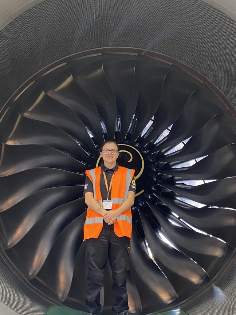 She also took responsibility on a ground engine run of a Trent 7000, communicating with the cockpit and ensuring the area was clear. These experiences deepened her technical understanding of modern aircraft systems and showed her what responsibility feels like in a real maintenance environment. The engineers’ willingness to share their knowledge and expertise helped her build confidence, ask questions freely, and embrace the pace and teamwork of the hangar.
