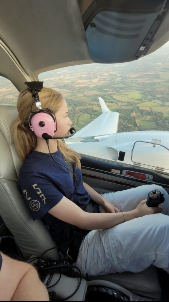 Her most defining moment came during her very first powered flight as part of her Air League scholarship. She had always been drawn to aviation through the Air Cadets and through travel, but sitting in the cockpit and feeling the aircraft lift from the runway transformed interest into certainty.