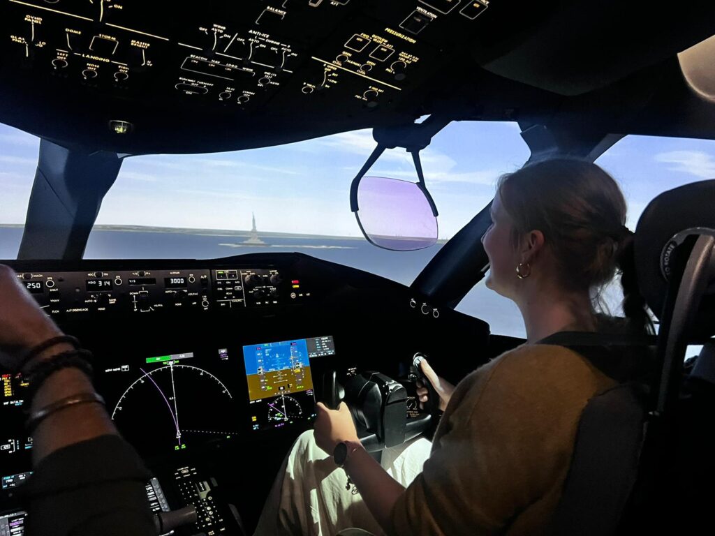 But knowing she wasn’t alone made a meaningful difference. Seeing women in the industry, and being part of a community that supports them, showed her that pursuing a flying career is not only possible but sustainable.